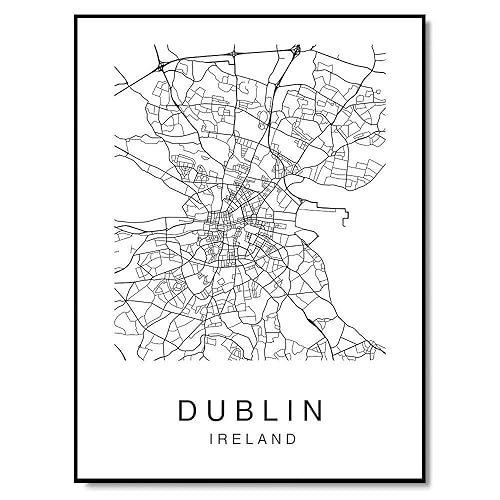 Dublin City Map Poster Wall Art Canvas Painting Ireland Street