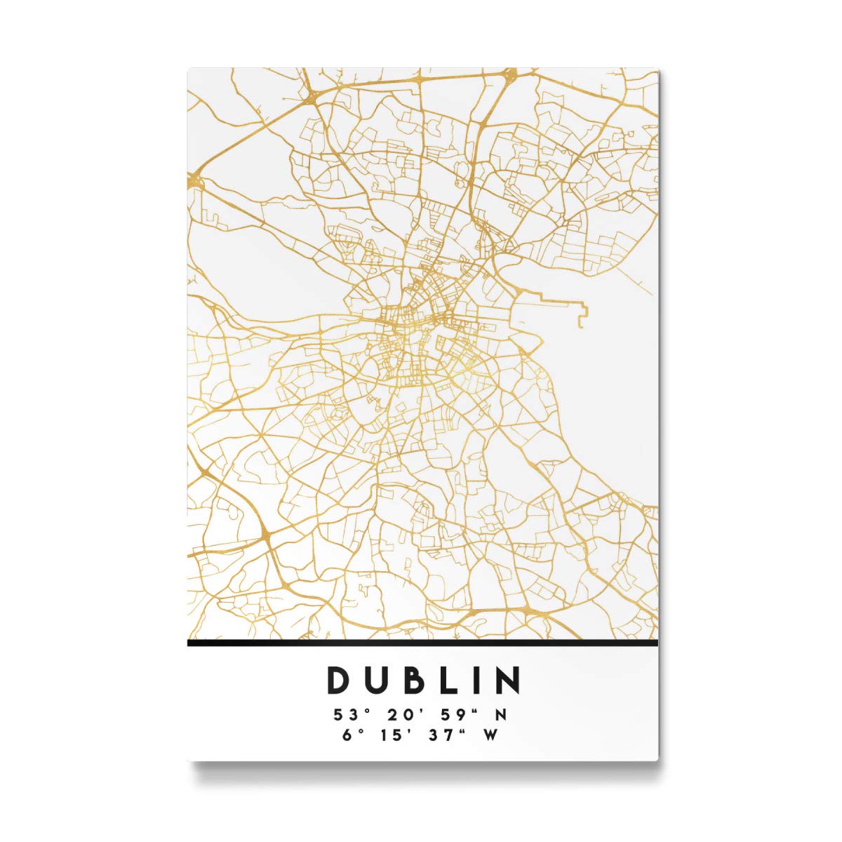 Minimal Dublin City Map Print Canvas Metal Framed Wall Art